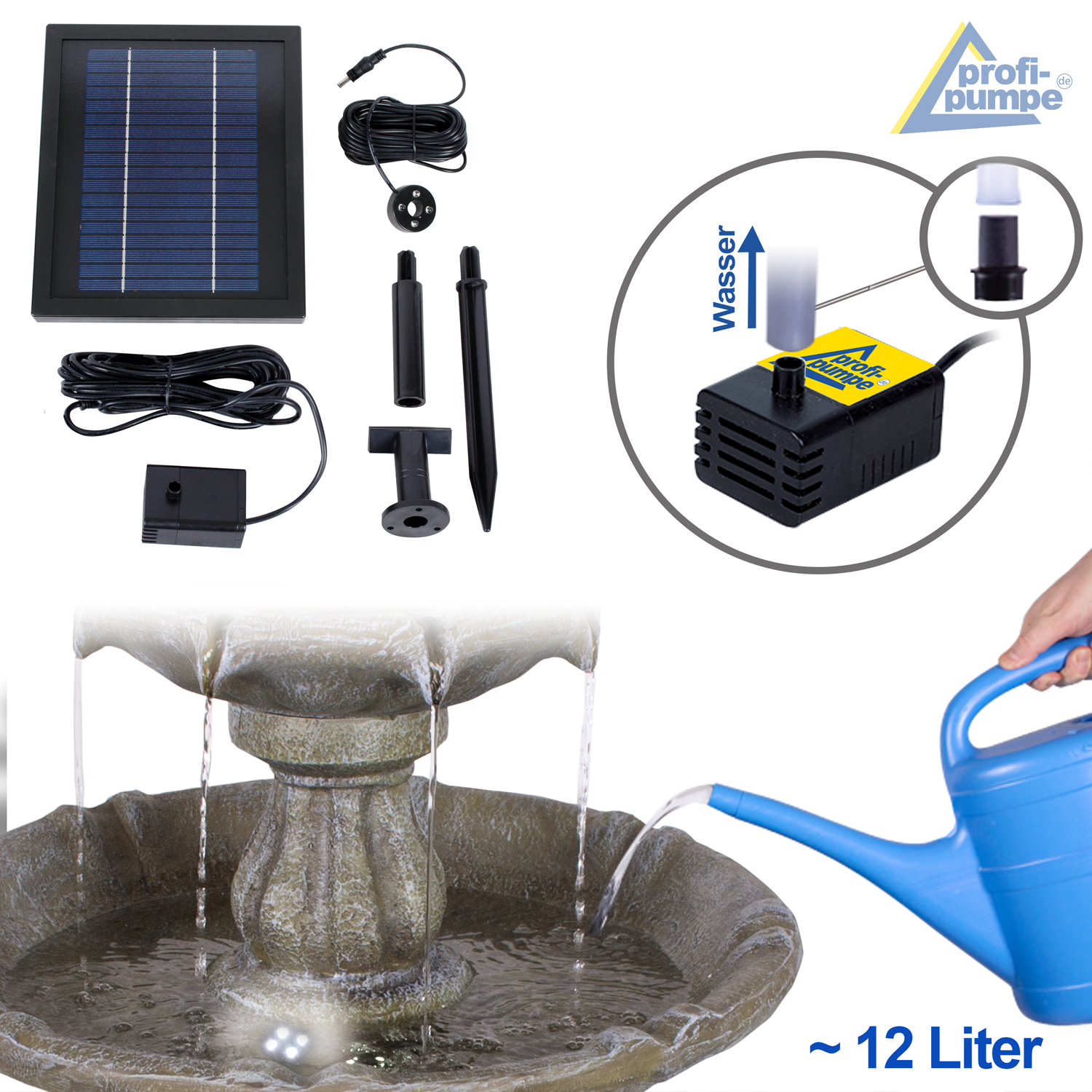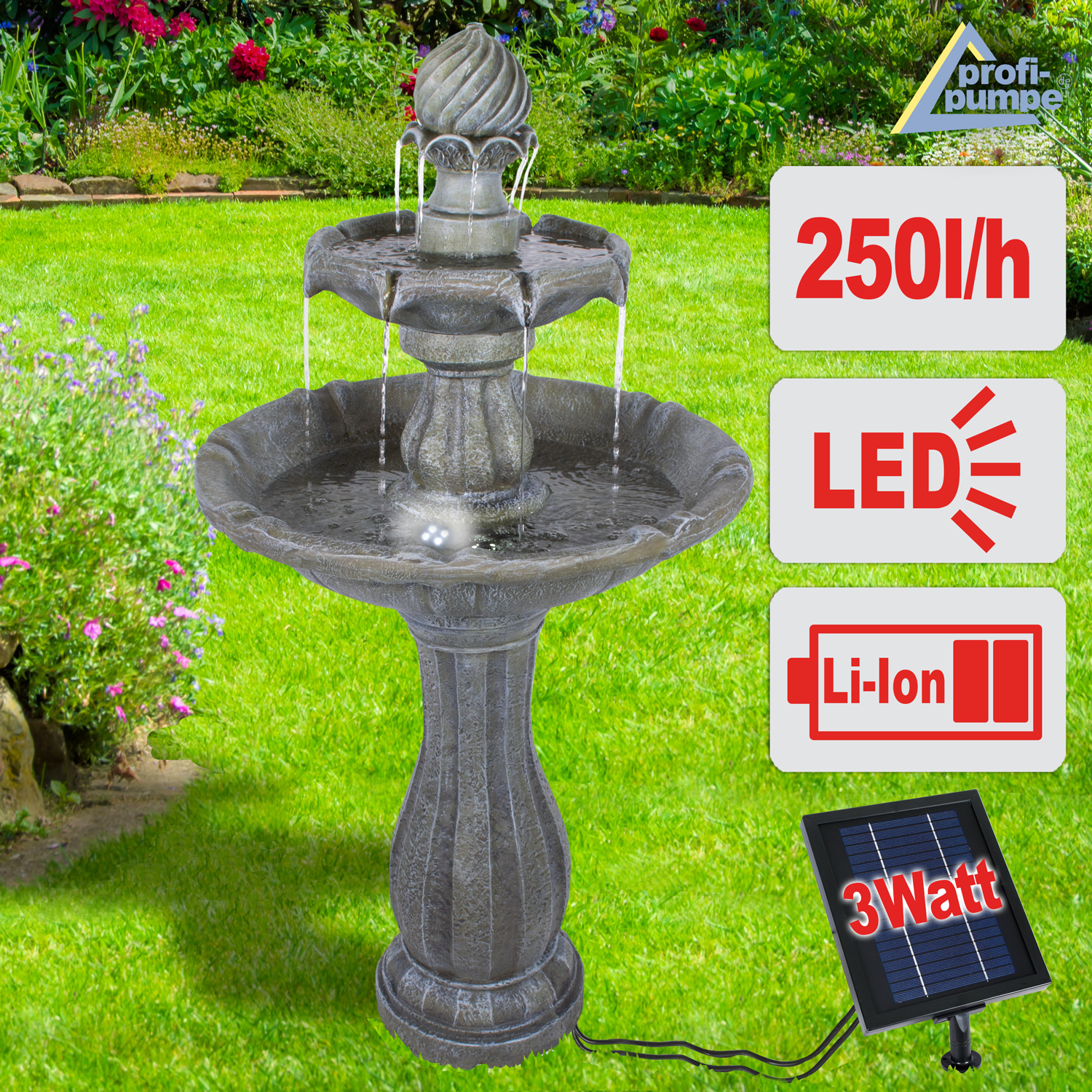 Solarbetriebener Garten-Brunnen mit Li-Ion Akku und LED-Lichter