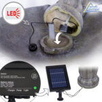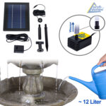 Mit dem einfachen Steckprinzip und dem Solarpanel ist der Solarbrunnen schnell aufgebaut. Der Vorteil an einem Solarbrunnen ist das Sie keine Steckdose benötigen und somit das lästige Verlegen des 230V-Kabels entfällt. Außerdem können Sie das Solarsystem frei nach Ihrem Geschmack effektvoll Positionieren. Der Gebrauch des Solarpanels ist auch die sichere Alternative zu der 230V Steckdose. Zudem sparen Sie sich den Ärger mit den durch Nagetiere beschädigten Kabeln und dadurch verursachten Stromausfällen. Bitte bedenken Sie, dass das Solarpanel stets im vollen Sonnenlicht zu platzieren und auszurichten ist, da sonst keine Pumpenfunktion garantiert werden kann.