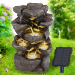 Solarbetriebener Garten-Brunnen mit Li-Ion Akku und LED-Lichter