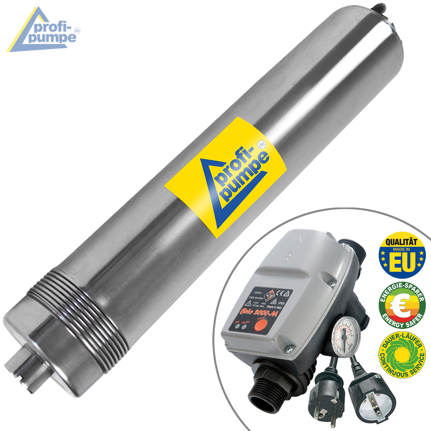 Die Regen-Star Super ist eine solide, zuverlässige und leistungsstarke Tauchpumpe aus rostfreiem Edelstahl für den vertikalen und horizontalen Betrieb. Sie ist bestens für den Einsatz in großen Wasserspeichern geeignet. Durch den horizontalen Betrieb kann, im Gegensatz zu vertikalen Pumpen, wesentlich mehr Wasser aus dem Wasserspeicher entnommen werden. Dadurch erhöht sich das Nutzvolumen des Wasserbehälters. Die Tauchpumpe fördert das Wasser mit hohen Druck weiter an die Abnahmestelle im Haus oder Garten.